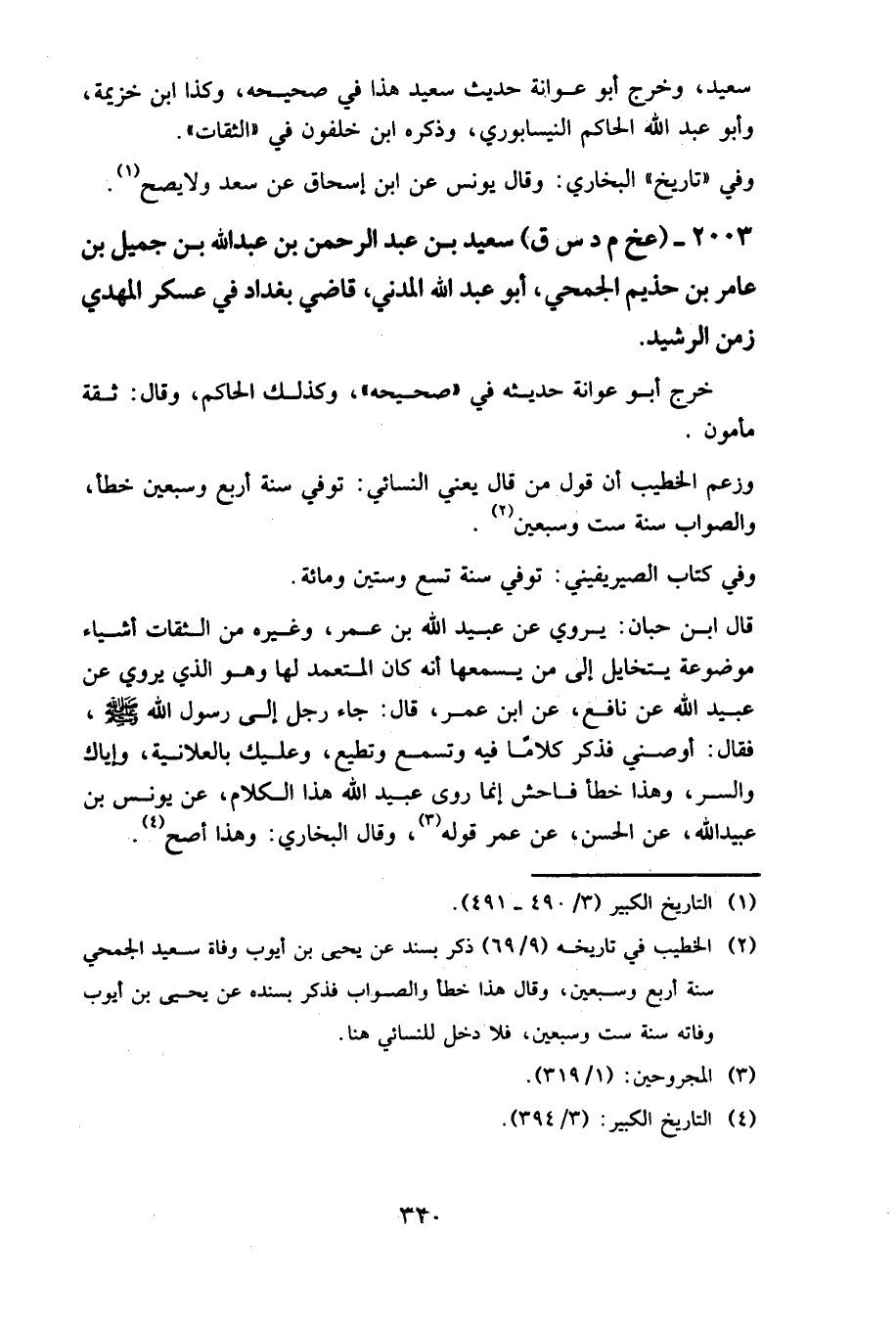 ٢٠٠٣ - (عخ م د س ق) سعيد بن عبد الرحمن بن عبد الله بن جميل بن عامر بن حذيم الجمحي، أبو عبد الله المدني، قاضي بغداد في عسكر المهدي زمن الرشيد ..