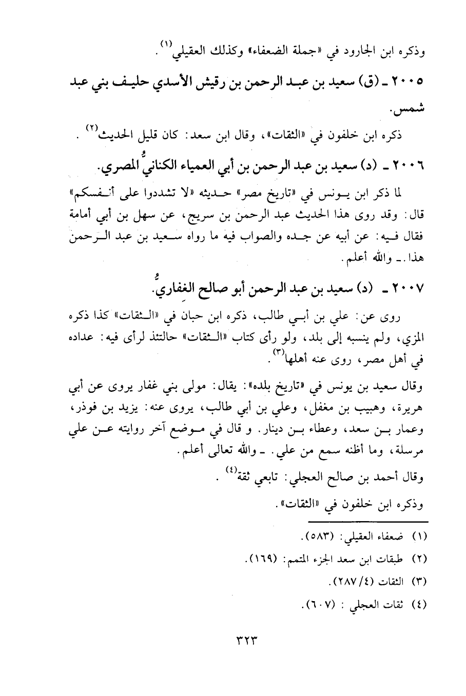 ٢٠٠٦ - (د) سعيد بن عبد الرحمن بن أبي العمياء الكناني المصري.
