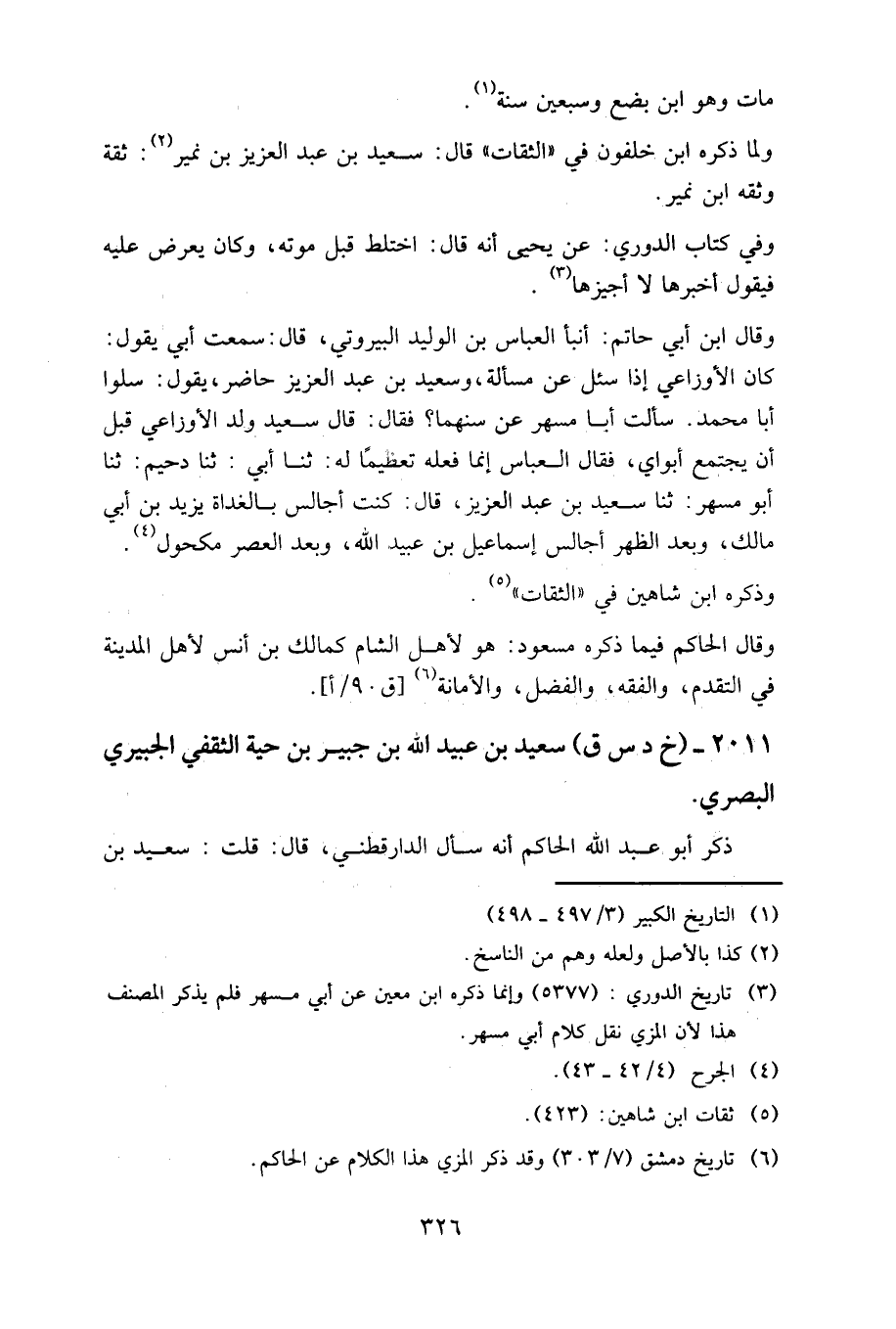 ولما ذكره ابن خلفون في «الثقات» قال: سعيد بن عبد العزيز بن نمير: ثقة وثقه ابن نمير.