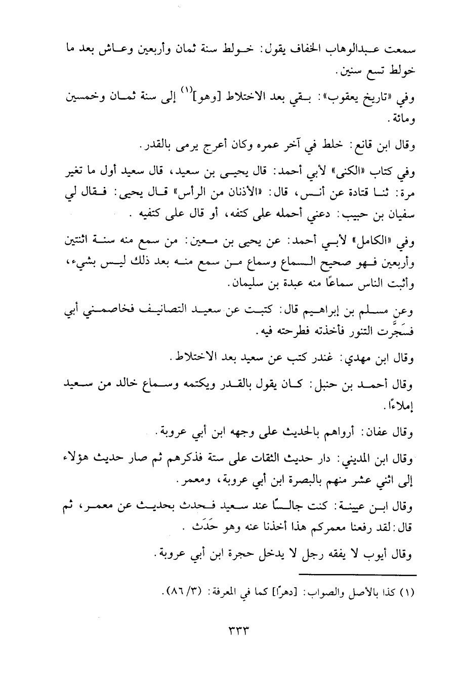 وقال ابن مهدي: غندر كتب عن سعيد بعد الاختلاط.