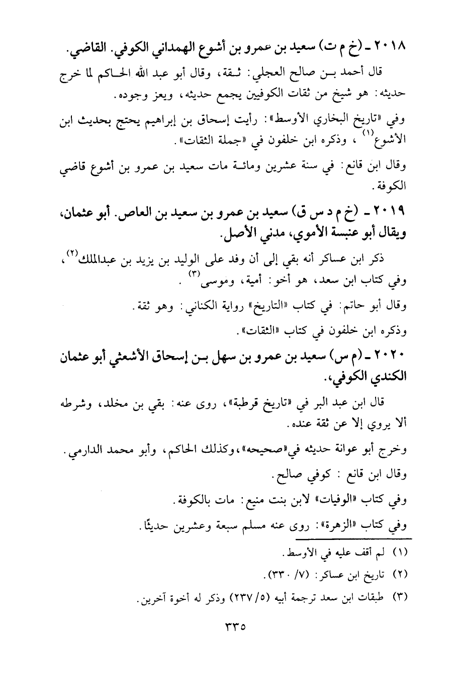 ٢٠١٨ - (خ م ت) سعيد بن عمرو بن أشوع الهمداني الكوفي. القاضي.