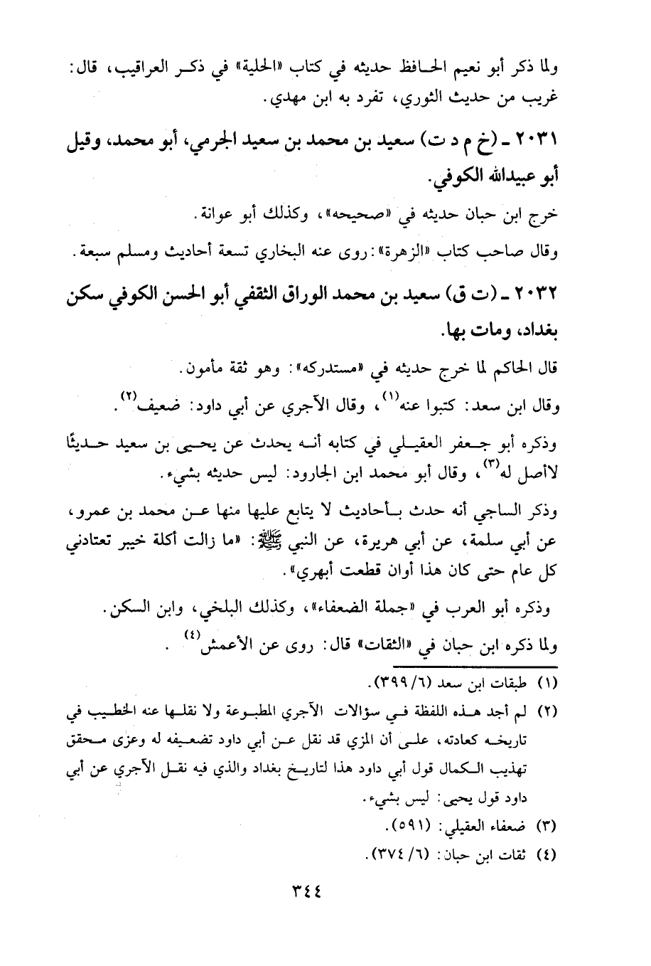 ٢٠٣٢ - (ت ق) سعيد بن محمد الوراق الثقفي أبو الحسن الكوفي سكن بغداد، ومات بها.