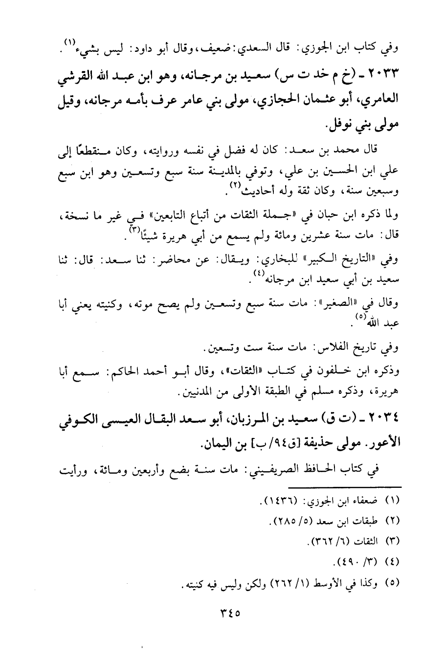 ٢٠٣٣ - (خ م خد ت س) سعيد بن مرجانه، وهو ابن عبد الله القرشي العامري، أبو عثمان الحجازي، مولى بني عامر عرف بأمه مرجانه، وقيل مولى بني نوفل.