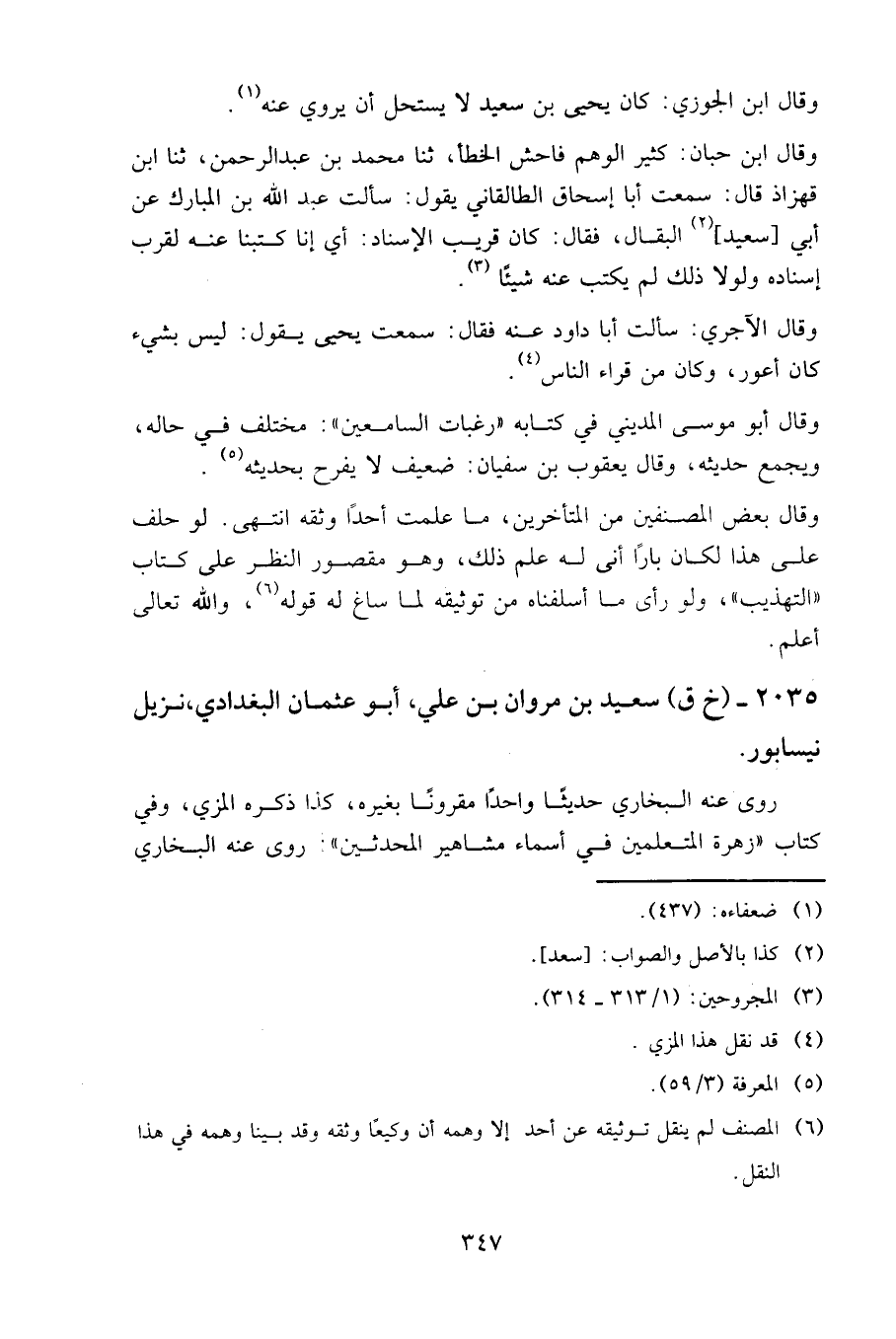 ٢٠٣٥ - (خ ق) سعيد بن مروان بن علي، أبو عثمان البغدادي، نزيل نيسابور.