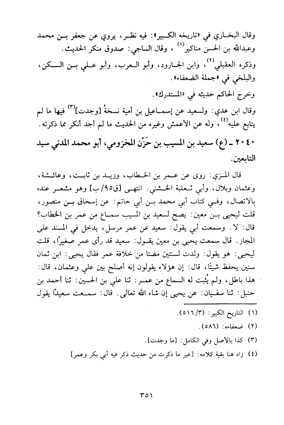 ٢٠٤٠ - (ع) سعيد بن المسيب بن حزن المخزومي، أبو محمد المدني سيد التابعين.