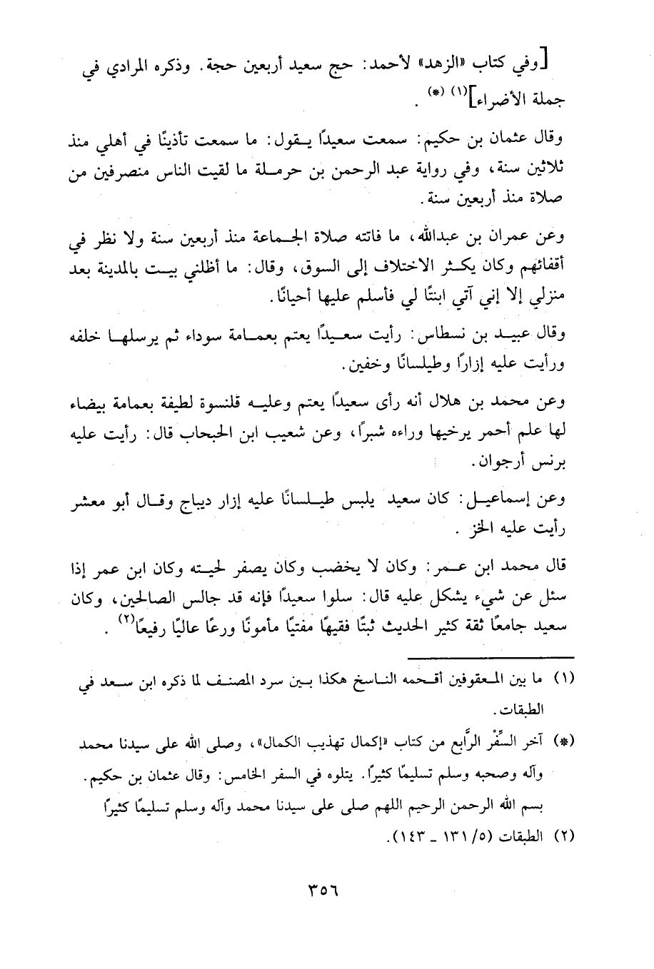 (وفي كتاب «الزهد» لأحمد: حج سعيد أربعين حجة. وذكره المرادي في جملة الأضراء).