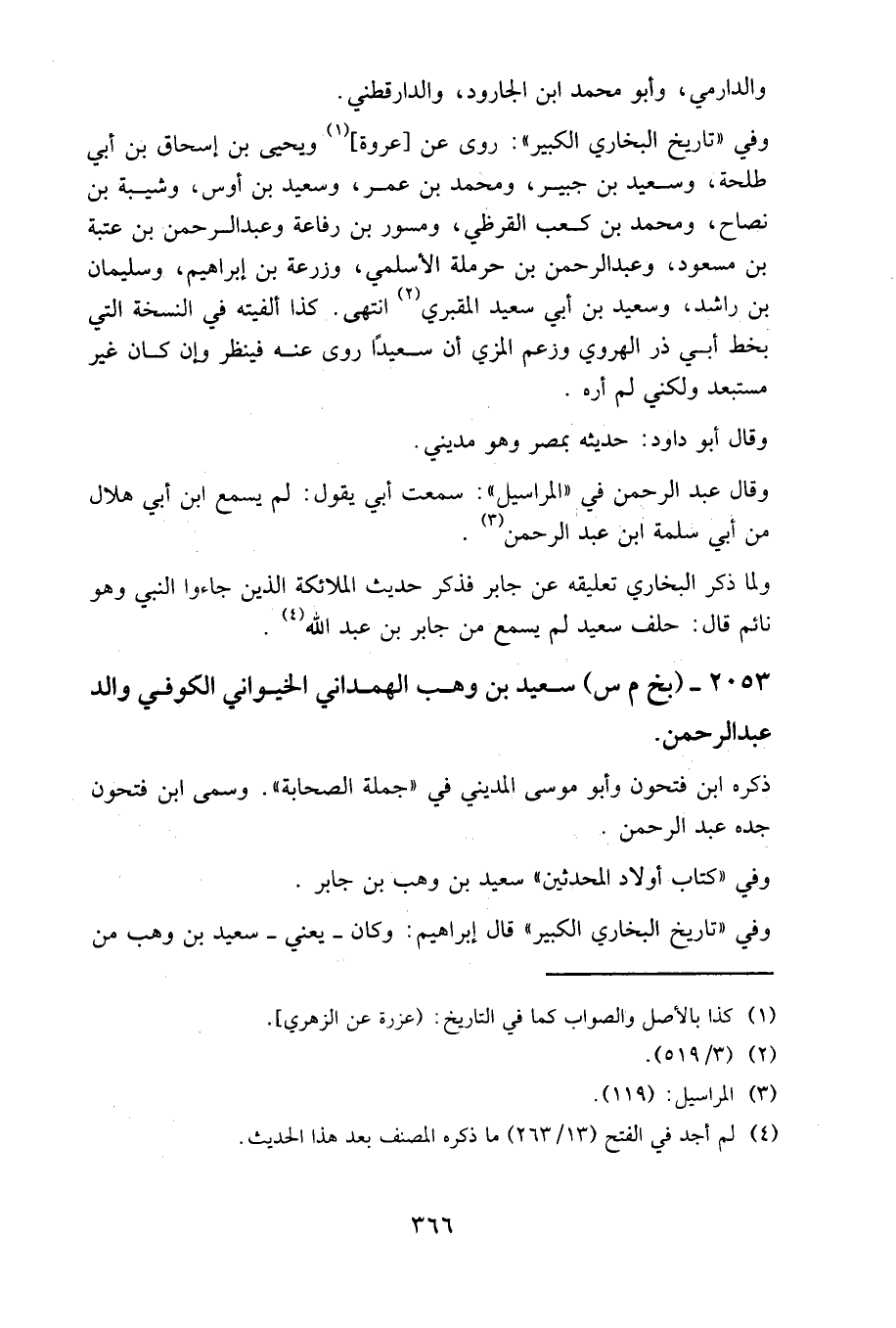 وفي «تاريخ البخاري الكبير» قال إبراهيم: وكان- يعني- سعيد بن وهب من