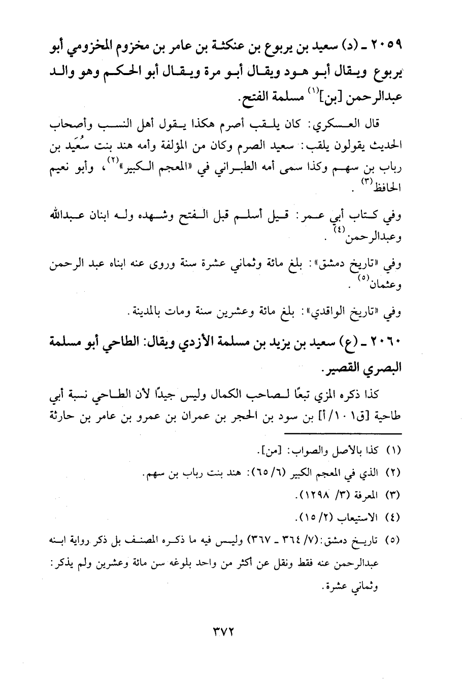 ٢٠٦٠ - (ع) سعيد بن يزيد بن مسلمة الأزدي ويقال: الطاحي أبو مسلمة البصري القصير.