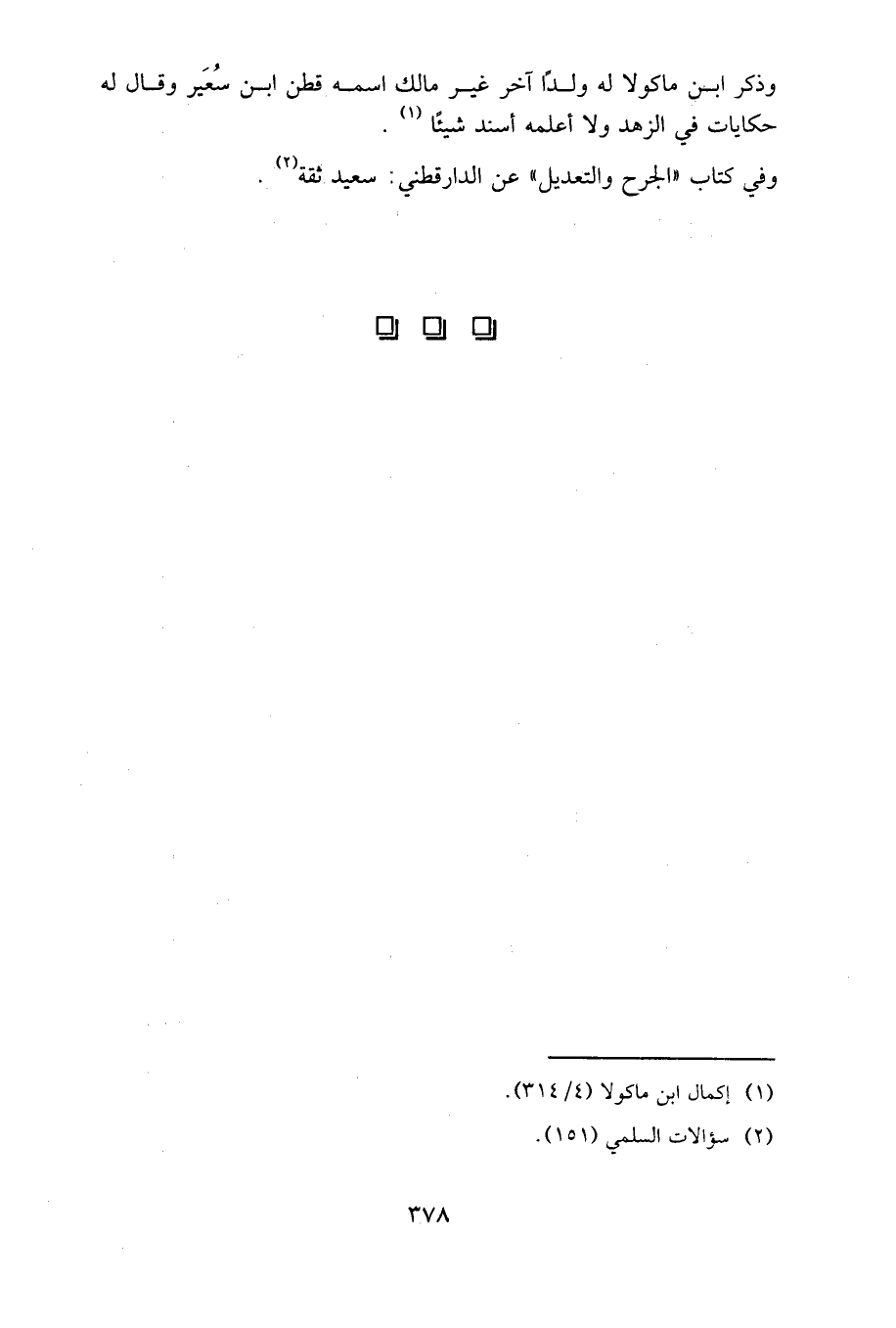 وذكر ابن ماكولا له ولدا آخر غير مالك اسمه قطن ابن سعير وقال له حكايات في الزهد ولا أعلمه أسند شيئا.