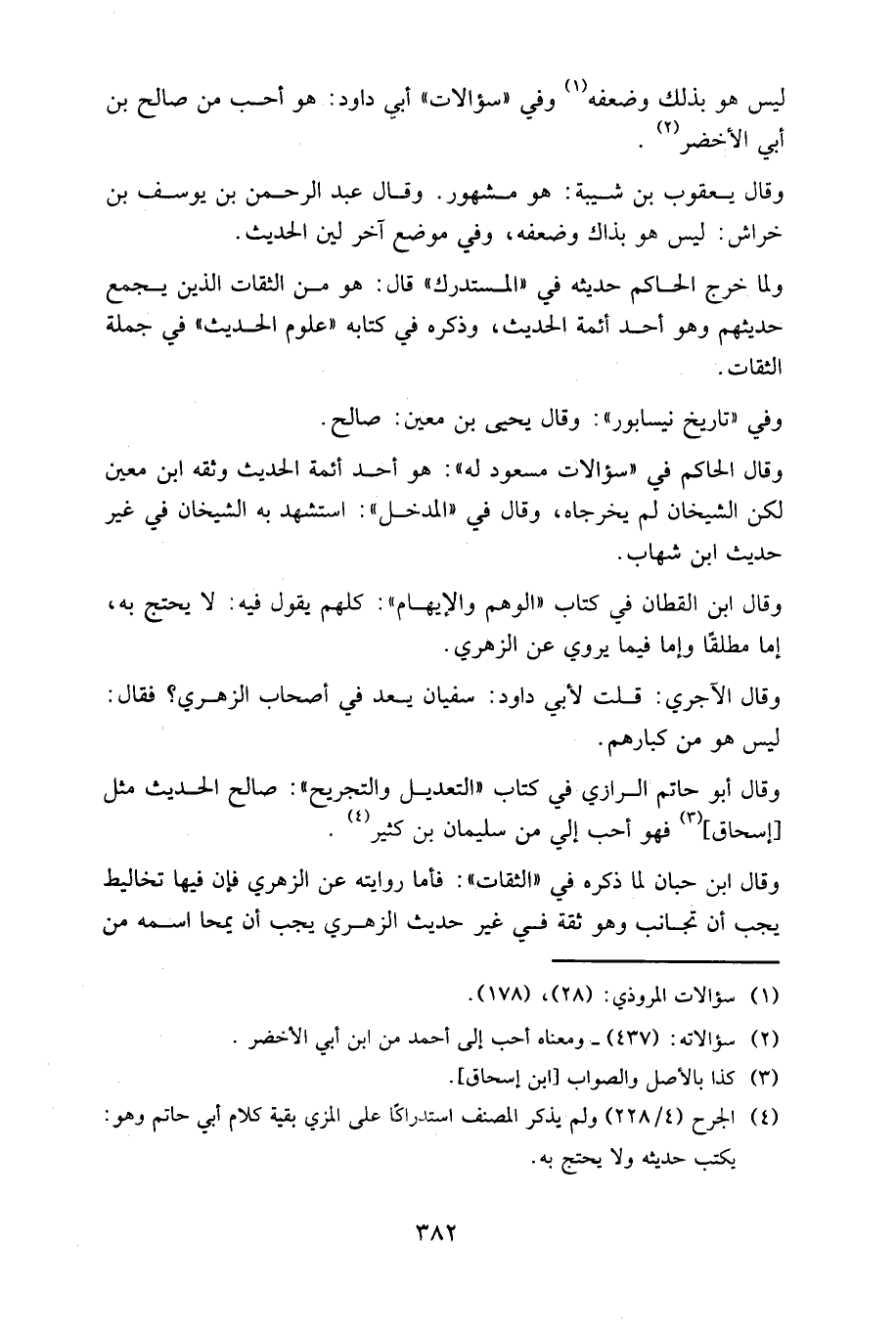 وقال ابن القطان في كتاب «الوهم والإيهام»: كلهم يقول فيه: لا يحتج به، إما مطلقا وإما فيما يروي عن الزهري.