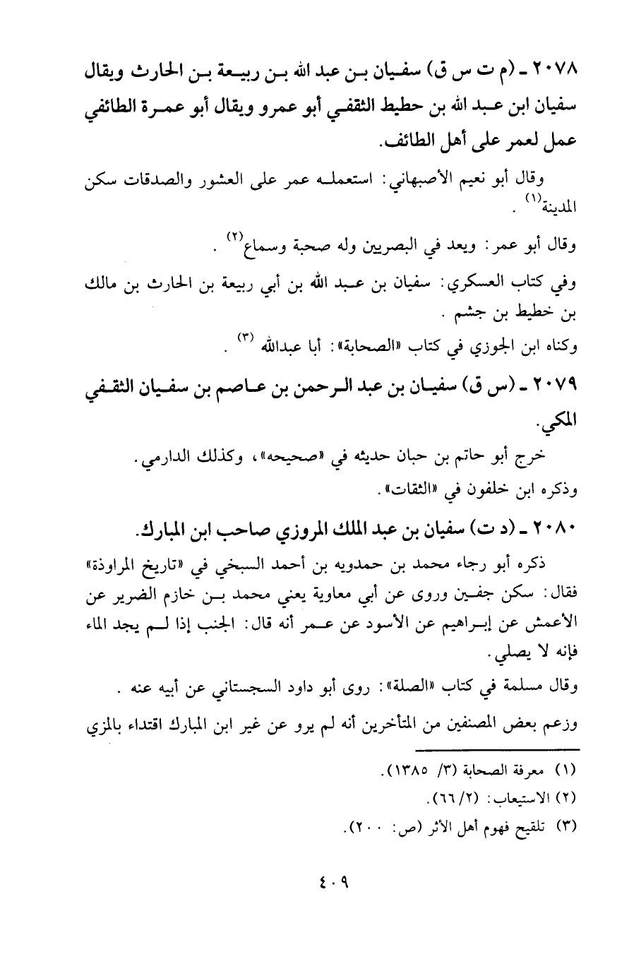 ٢٠٧٨ - (م ت س ق) سفيان بن عبد الله بن ربيعة بن الحارث ويقال سفيان ابن عبد الله بن حطيط الثقفي أبو عمرو ويقال أبو عمرة الطائفي عمل لعمر على أهل الطائف.