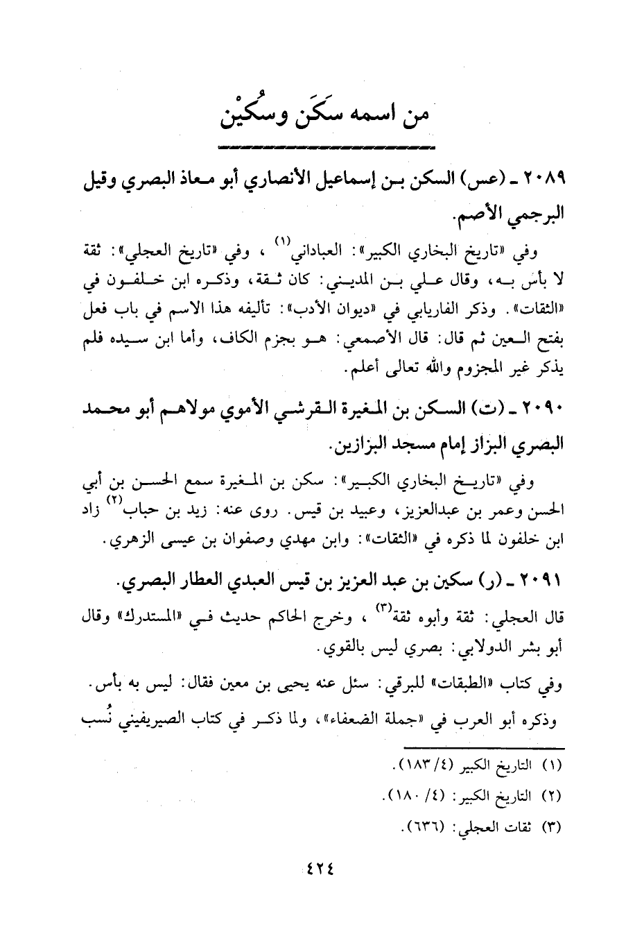 ٢٠٨٩ - (عس) السكن بن إسماعيل الأنصاري أبو معاذ البصري وقيل البرجمي الأصم.