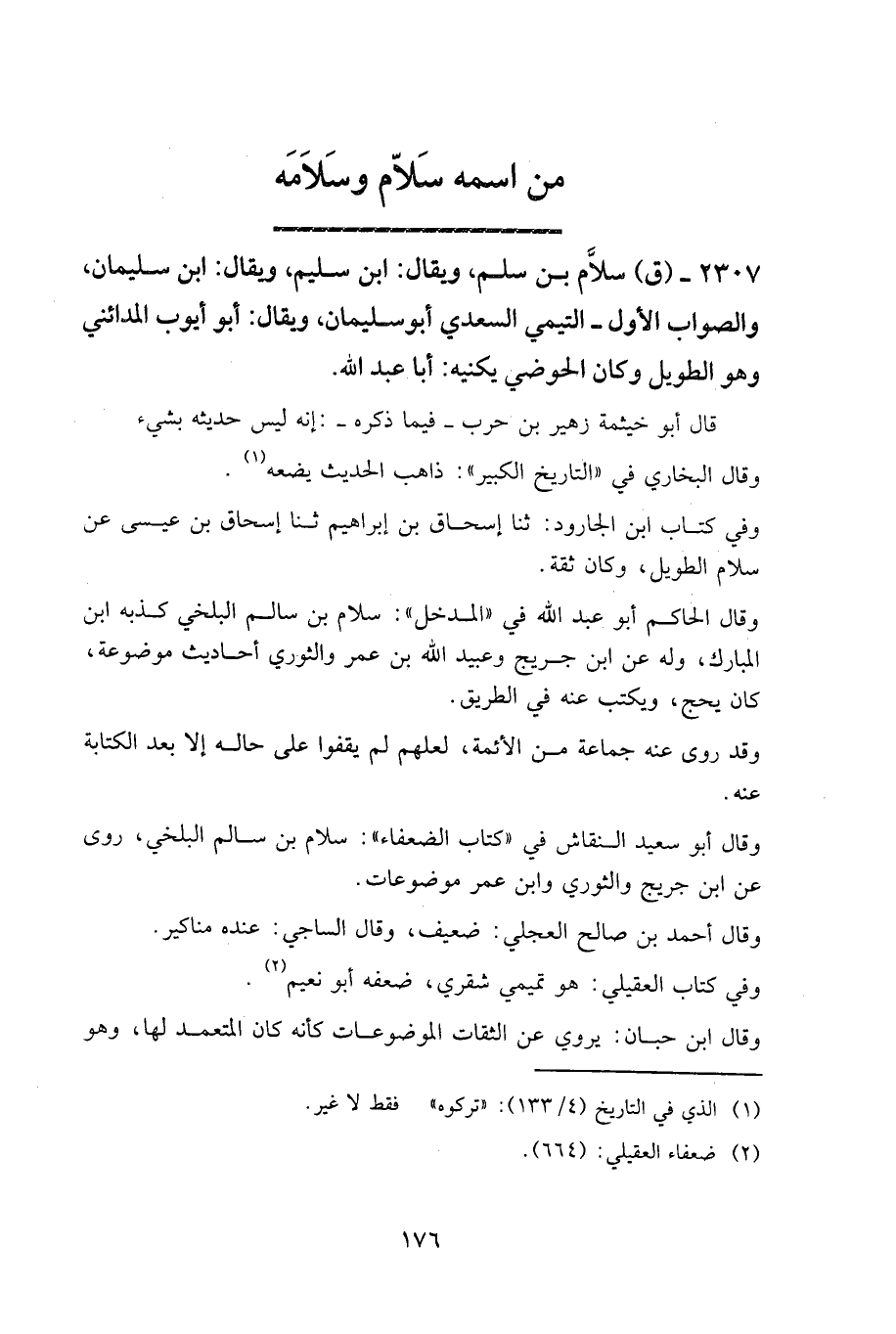 ٢٣٠٧ - (ق) سلام بن سلم، ويقال: ابن سليم، ويقال: ابن سليمان، والصواب الأول - التيمي السعدي أبو سليمان، ويقال: أبو أيوب المدائني وهو الطويل وكان الحوضي يكنيه: أبا عبد الله.