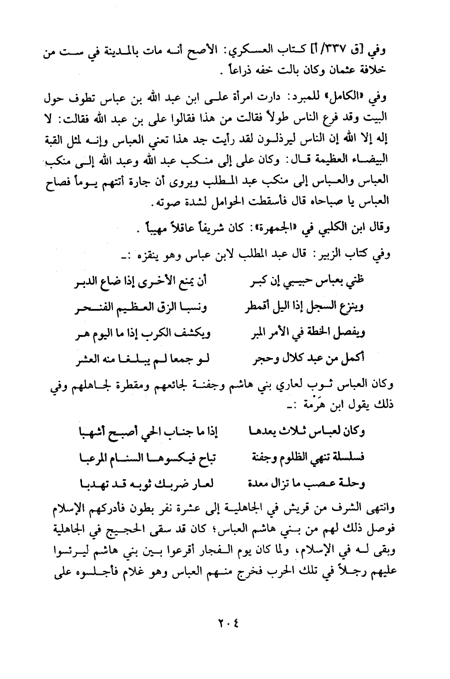 وكان العباس ثوبا لعاري بني هاشم وجفنة لجائعهم ومقطرة لجاهلهم وفي ذلك يقول ابن هرمة: