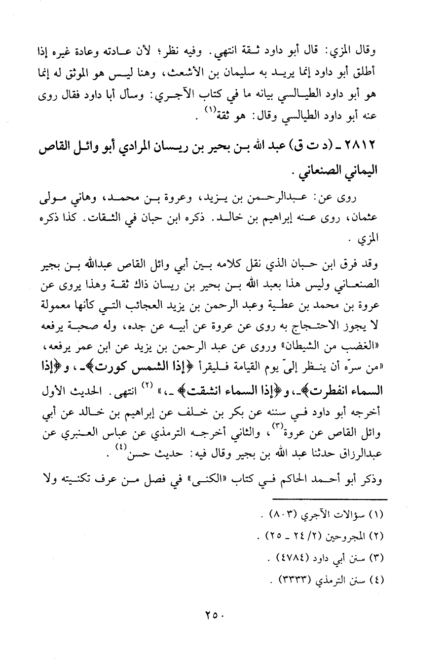 ٢٨١٢ - (د ت ق) عبد الله بن بحير بن ريسان المرادي أبو وائل القاص اليماني الصنعاني.