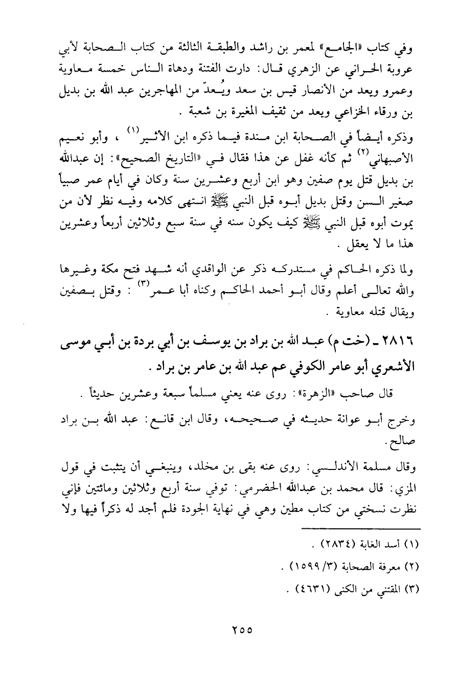 ٢٨١٦ - (خت م) عبد الله بن براد بن يوسف بن أبي بردة بن أبي موسى الأشعري أبو عامر الكوفي عم عبد الله بن عامر بن براد.