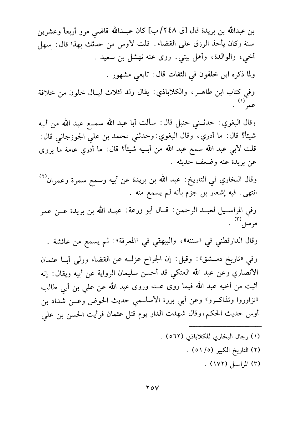 ابن عبد الله بن بريدة قال [ق ٢٤٨/ب] كان عبد الله قاضي مرو أربعا وعشرين سنة، وكان يأخذ الرزق على القضاء. قلت لأوس من حدثك بهذا قال: سهل أخي، والوالدة، وأهل بيتي. روى عنه نهشل بن سعيد.