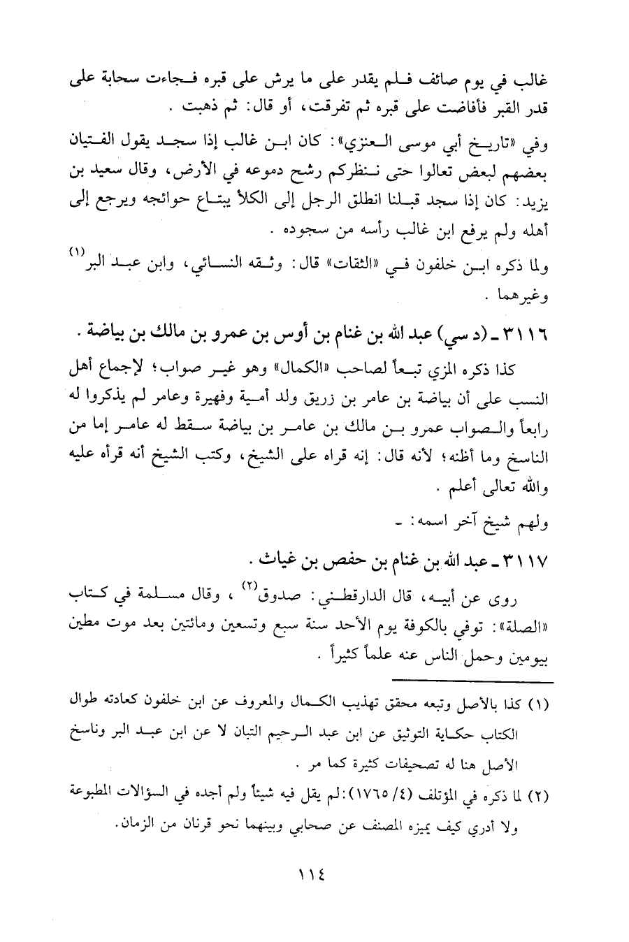 ٣١١٧ - عبد الله بن غنام بن حفص بن غياث.