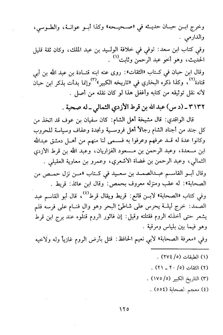 ٣١٣٢ - (د س) عبد الله بن قرط الأزدي الثمالي - له صحبة.
