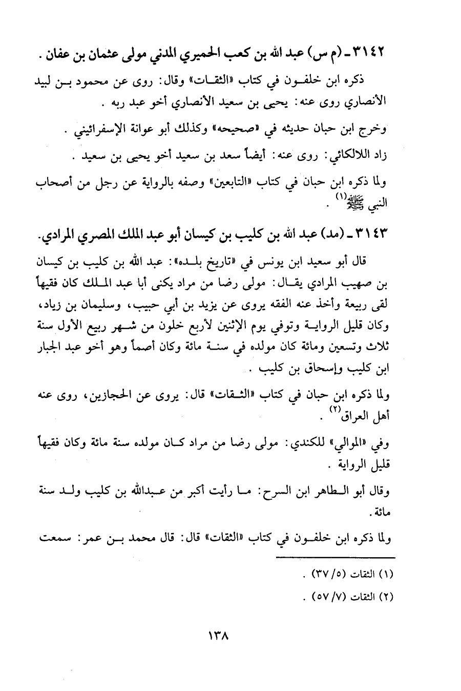 ٣١٤٣ - (مد) عبد الله بن كليب بن كيسان أبو عبد الملك المصري المرادي.