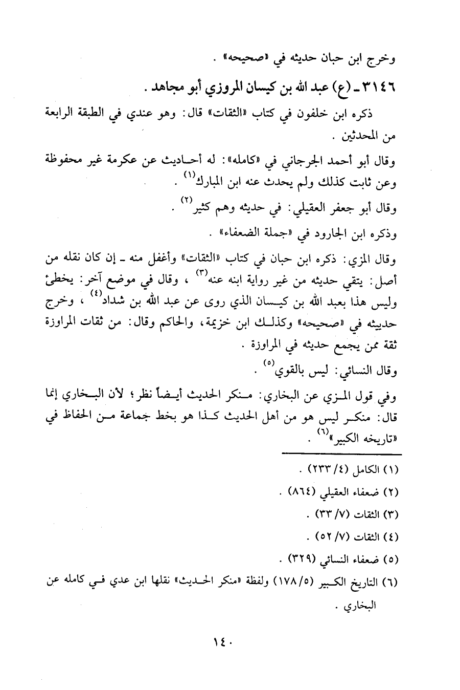 ٣١٤٦ - (ع) عبد الله بن كيسان المروزي أبو مجاهد.