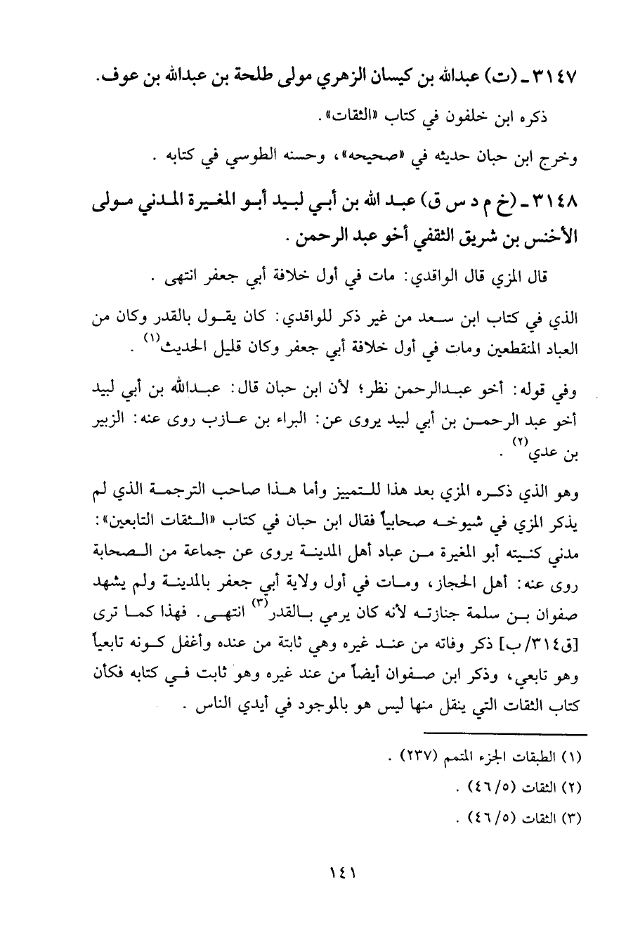 ٣١٤٧ - (ت) عبد الله بن كيسان الزهري مولى طلحة بن عبد الله بن عوف.