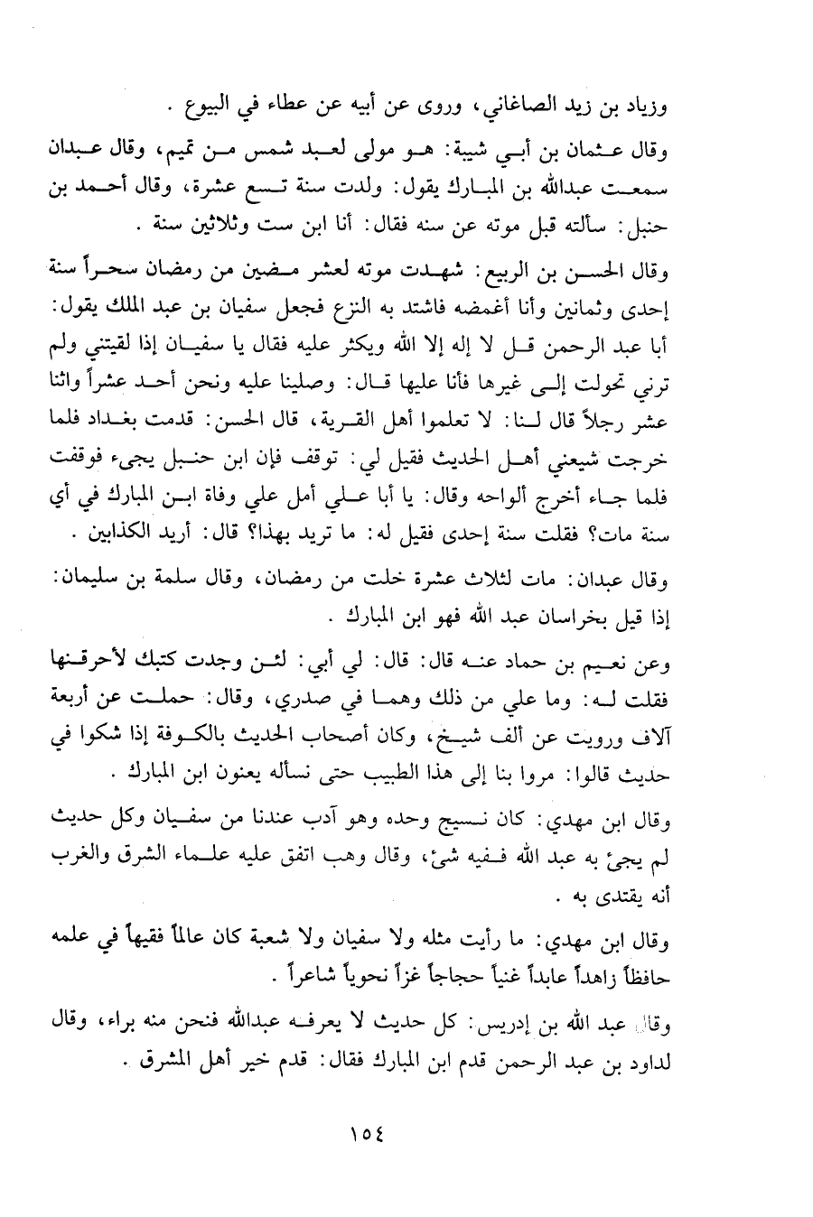 وقال عبد الله بن إدريس: كل حديث لا يعرفه عبد الله فنحن منه براء، وقال لداود بن عبد الرحمن قدم ابن المبارك فقال: قدم خير أهل المشرق.