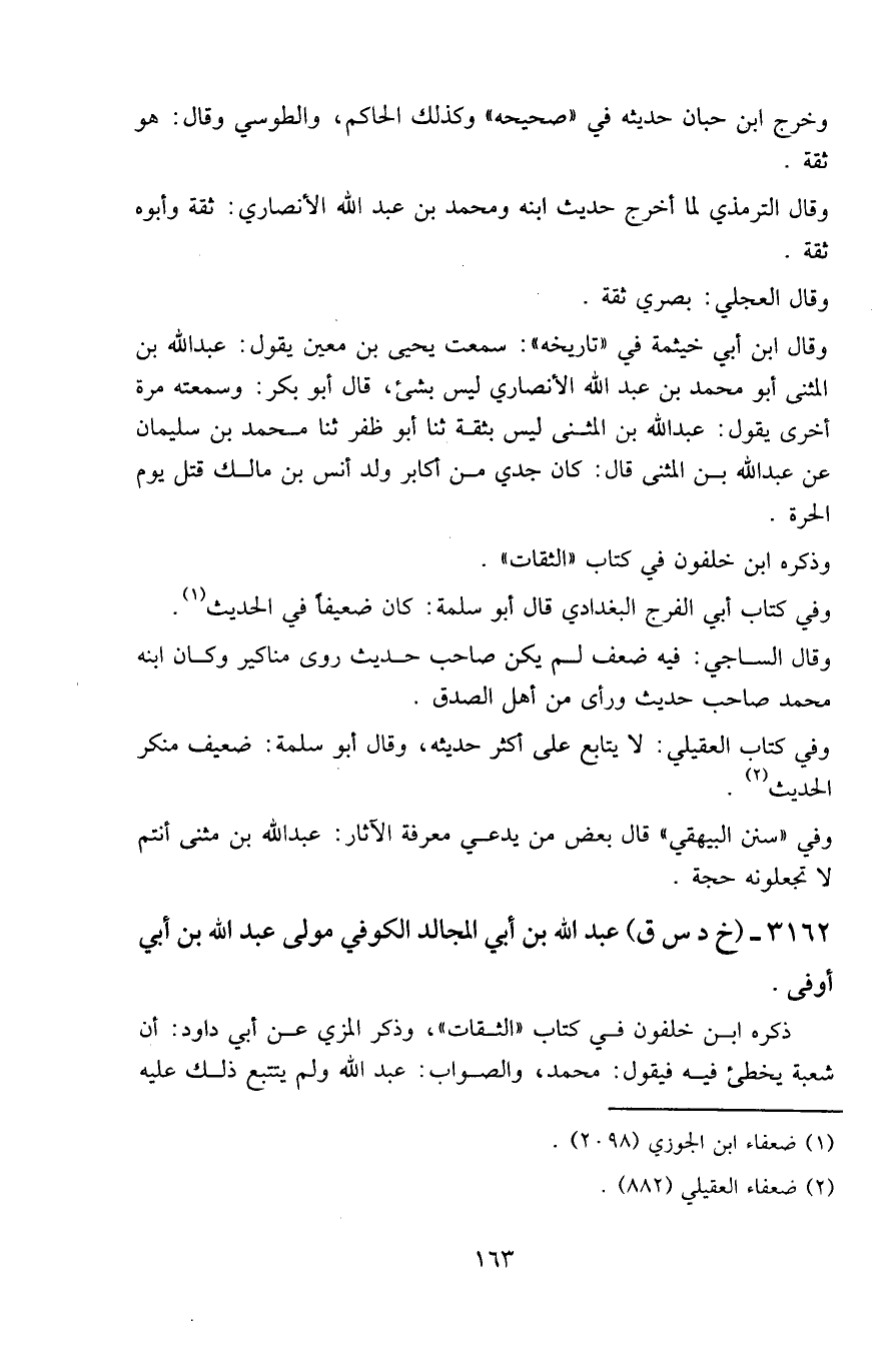 ٣١٦٢ - (خ د س ق) عبد الله بن أبي المجالد الكوفي مولى عبد الله بن أبي أوفى.