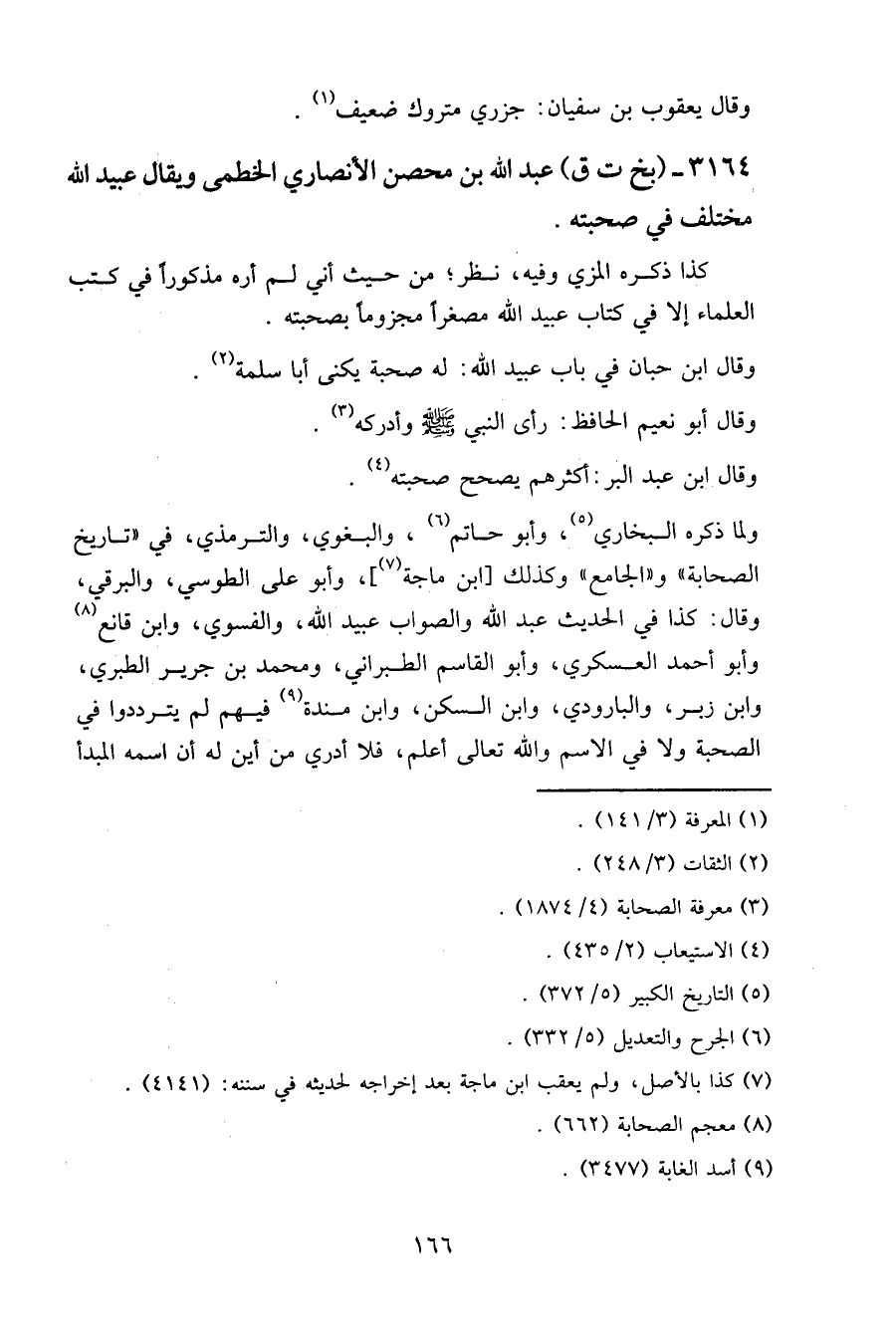 ٣١٦٤ - (بخ ت ق) عبد الله بن محصن الأنصاري الخطمي ويقال عبيد الله مختلف في صحبته.