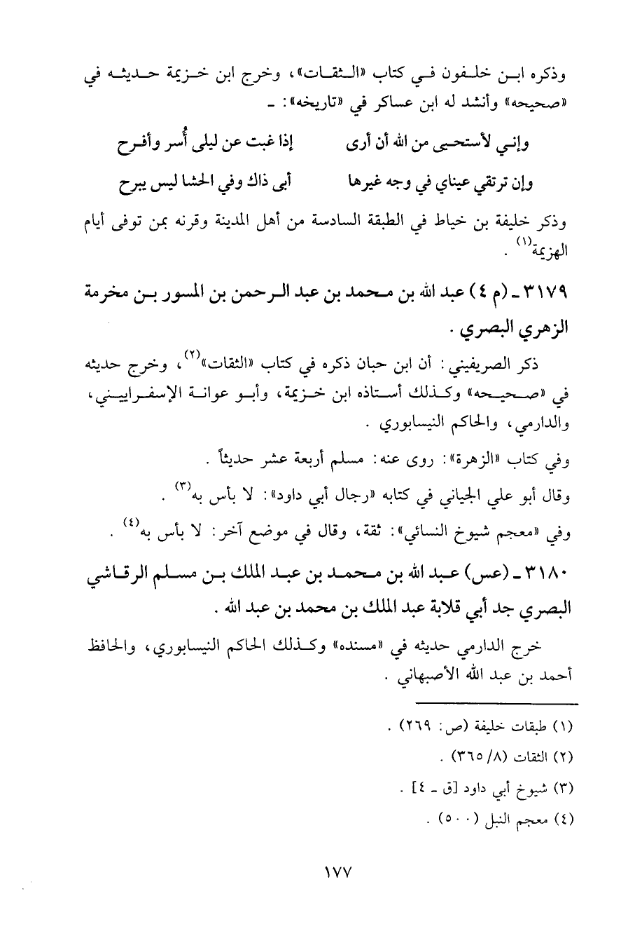 وذكره ابن خلفون في كتاب " الثقات "، وخرج ابن خزيمة حديثه في " صحيحه " وأنشد له ابن عساكر في " تاريخه ": -