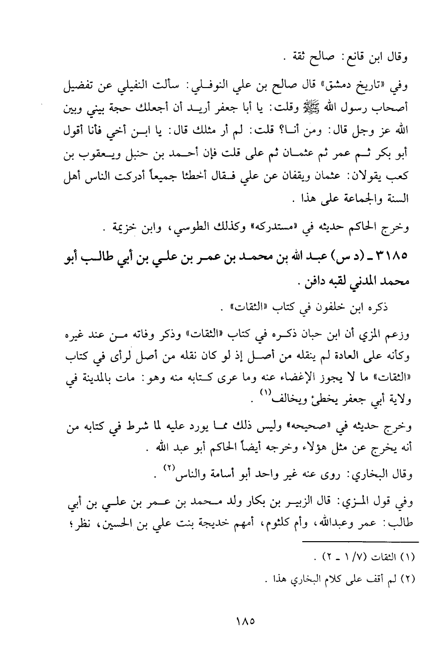 ٣١٨٥ - (د س) عبد الله بن محمد بن عمر بن علي بن أبي طالب أو محمد المدني لقبه دافن.