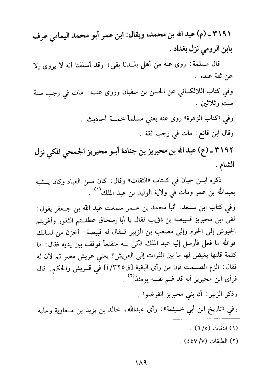 ٣١٩٢ - (ع) عبد الله بن محيريز بن جنادة أبو محيريز الجمحي المكي نزل الشام.