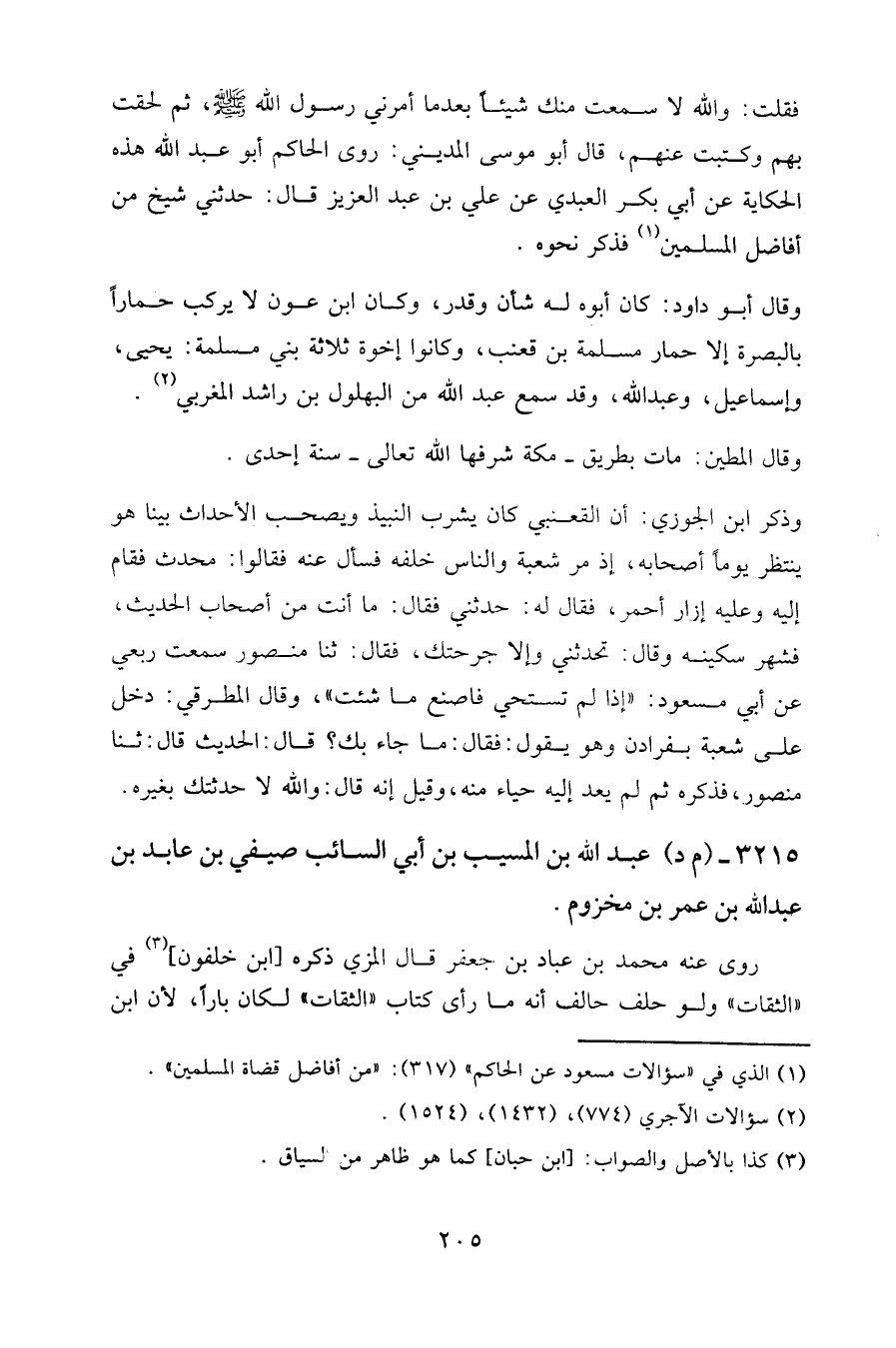 روى عنه محمد بن عباد بن جعفر قال المزي ذكره [ابن خلفون] في " الثقات " ولو حلف حالف أنه ما رأى كتاب " الثقات " لكان بارا، لأن ابن