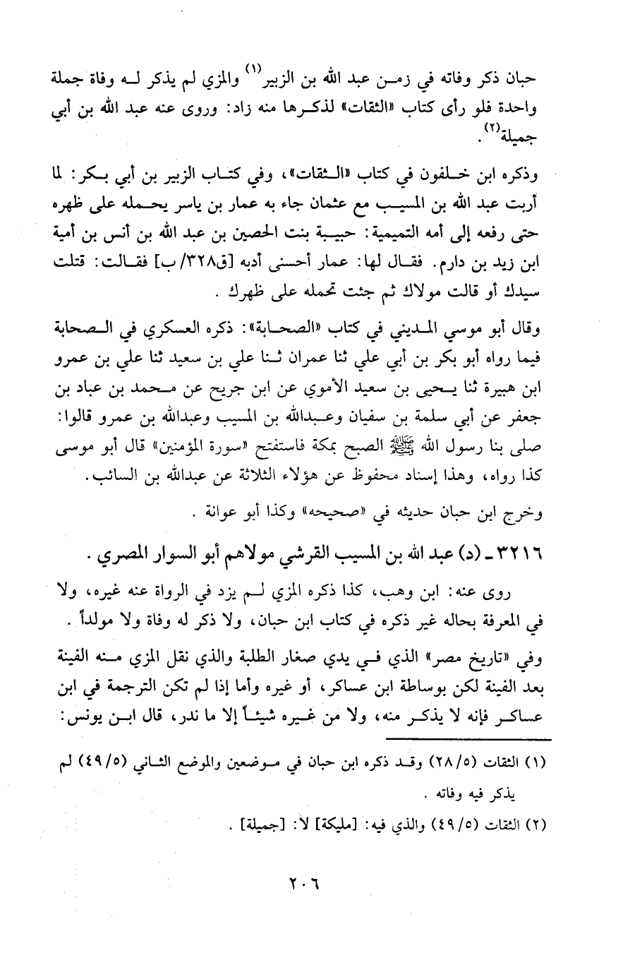 حبان ذكر وفاته في زمن عبد الله بن الزبير والمزي لم يذكر له وفاة جملة واحدة فلو رأى كتاب " الثقات " لذكرها منه زاد: وروى عنه عبد الله بن أبي جميلة.