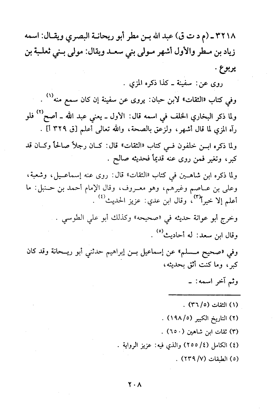 ٣٢١٨ - (م د ت ق) عبد الله بن مطر أبو ريحانة البصري ويقال: اسمه زياد بن مطر والأول أشهر مولى بني سعد ويقال: مولى بني ثعلبة بن يربوع.