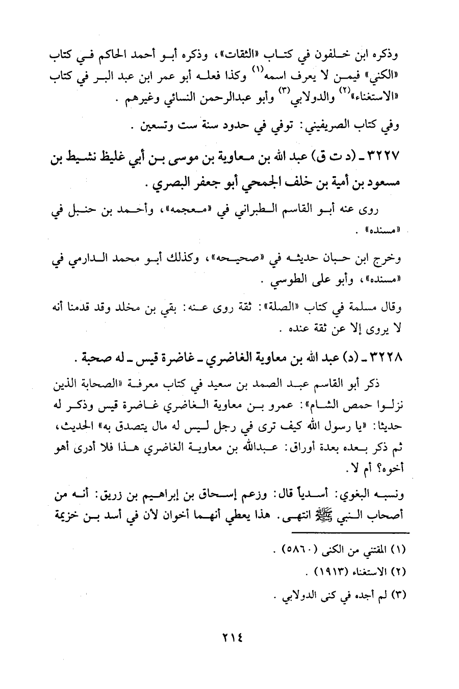 ٣٢٢٨ - (د) عبد الله بن معاوية الغاضري - غاضرة قيس - له صحبة.