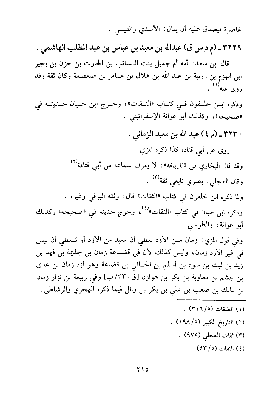 ٣٢٣٠ - (م ٤) عبد الله بن معبد الزماني.