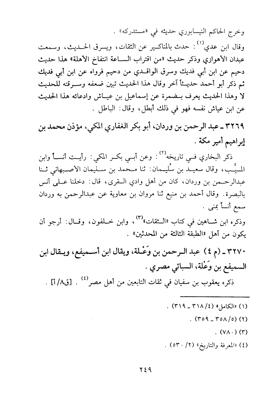 ٣٢٦٩ - عبد الرحمن بن وردان، أبو بكر الغفاري المكي، مؤذن محمد بن إبراهيم أمير مكة.