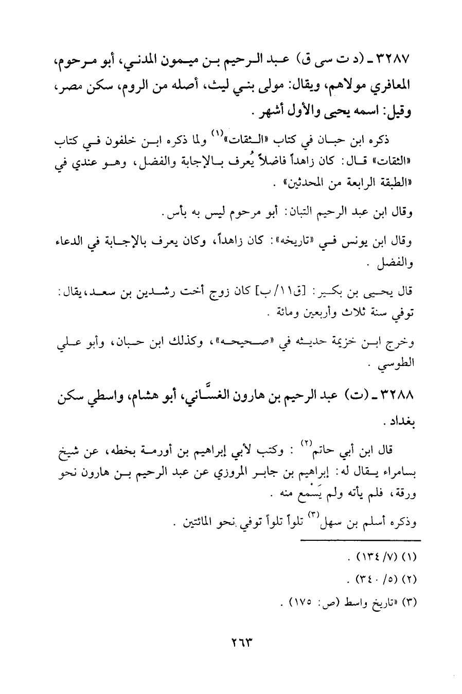 ٣٢٨٨ - (ت) عبد الرحيم بن هارون الغساني، أبو هشام، واسطي سكن بغداد.