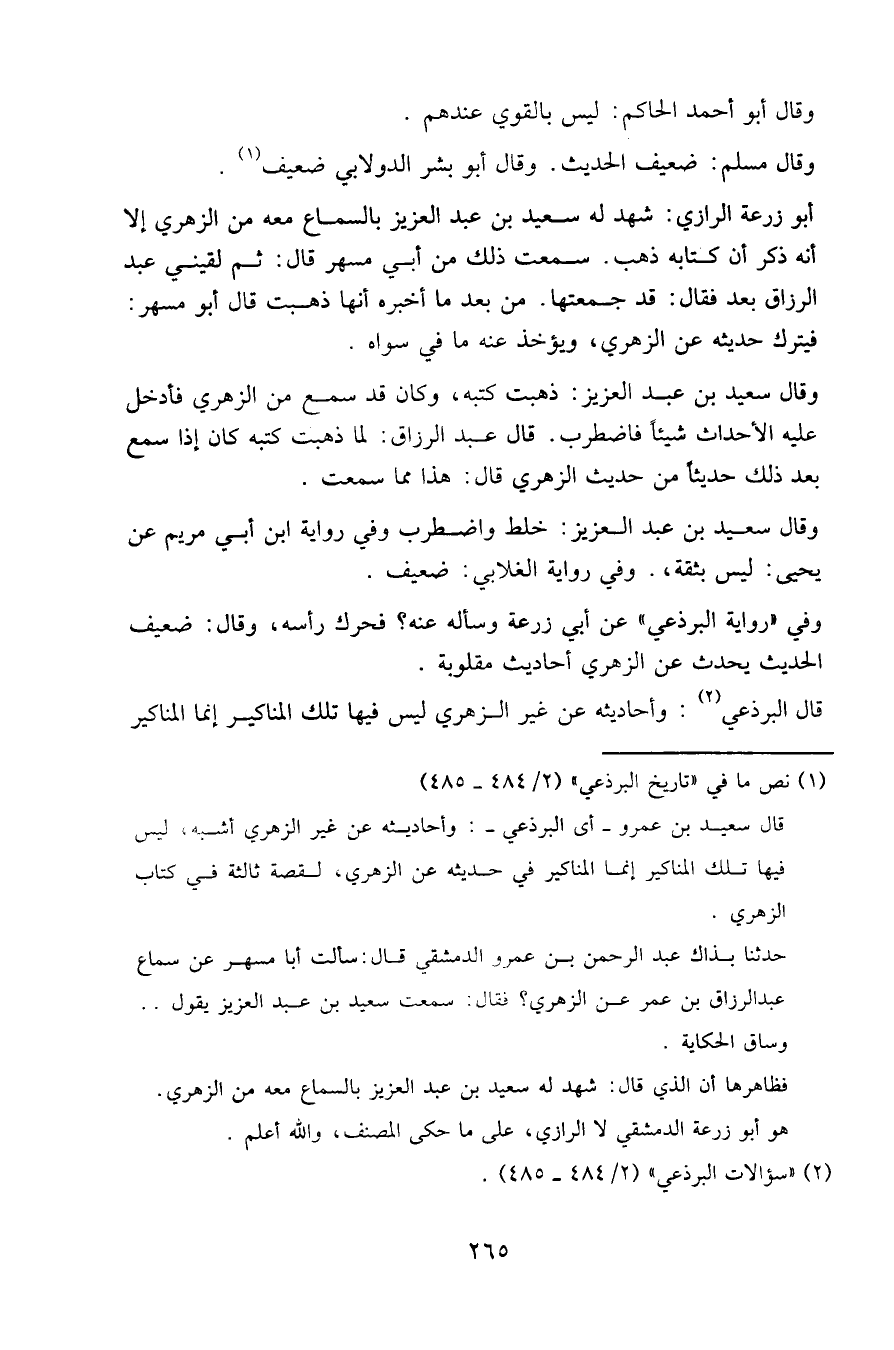 قال البرذعي: وأحاديثه عن غير الزهري ليس فيها تلك المناكير إنما المناكير