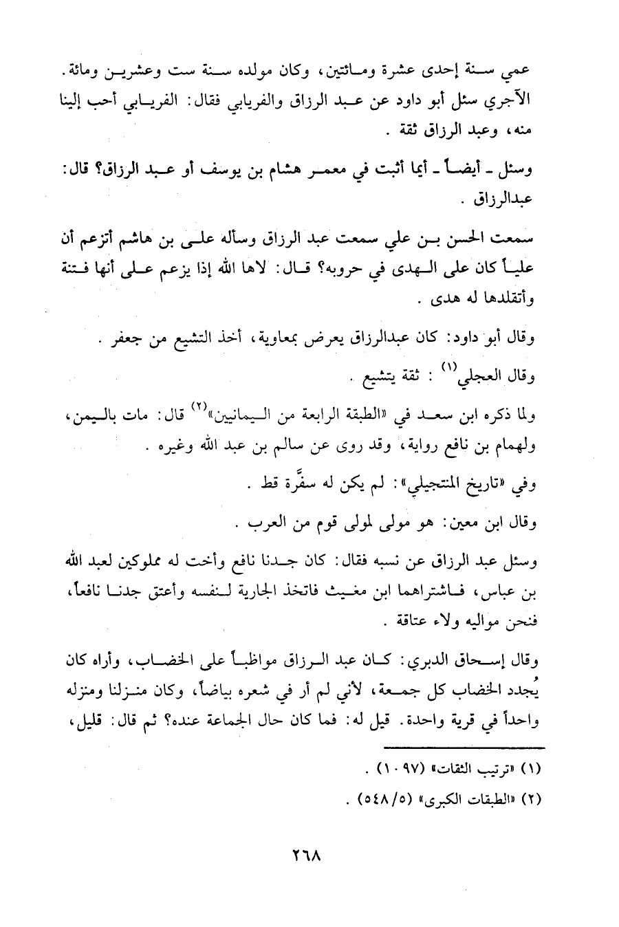 الآجري سئل أبو داود عن عبد الرزاق والفريابي فقال: الفريابي أحب إلينا منه، وعبد الرزاق ثقة.