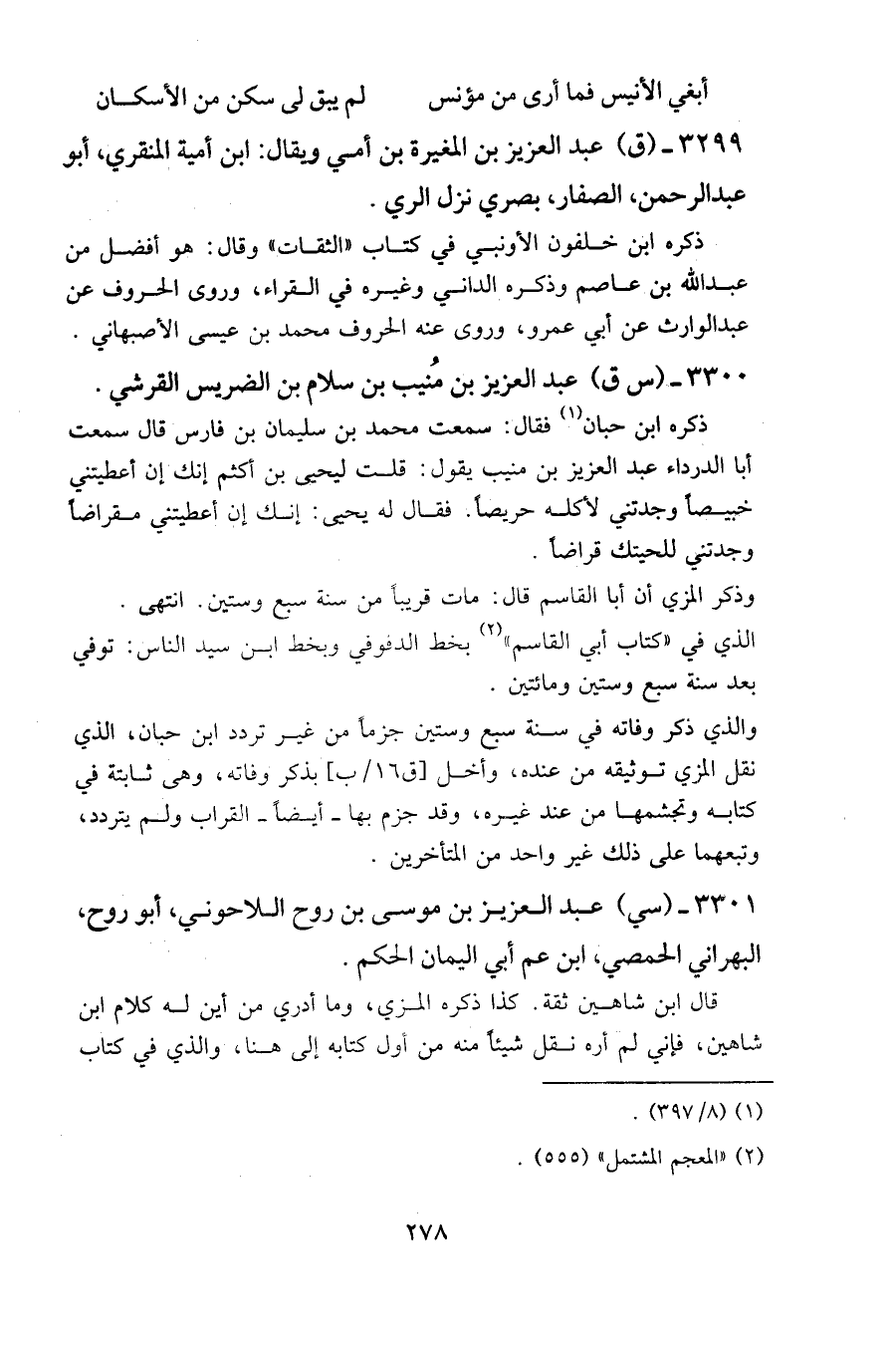 ٣٣٠١ - (سي) عبد العزيز بن موسى بن روح اللاحوني، أبو روح البهراني الحمصي، ابن عم أبي اليمان الحكم.