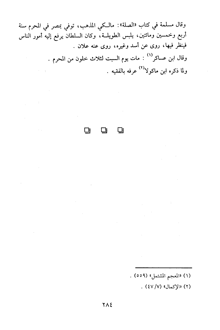 وقال مسلمة في كتاب " الصلة ": مالكي المذهب، توفي بمصر في المحرم سنة أربع وخمسين ومائتين، يلبس الطويلة، وكان السلطان يرفع إليه أمور الناس فينظر فيها، روى عن أسد وغيره، روى عنه علان.