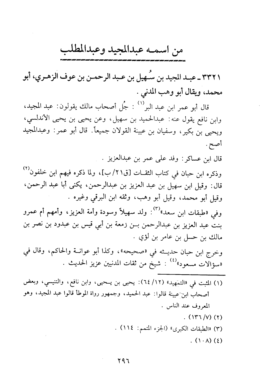 ٣٣٢١ - عبد المجيد بن سهيل بن عبد الرحمن بن عوف الزهري، أبو محمد، ويقال أبو وهب المدني.