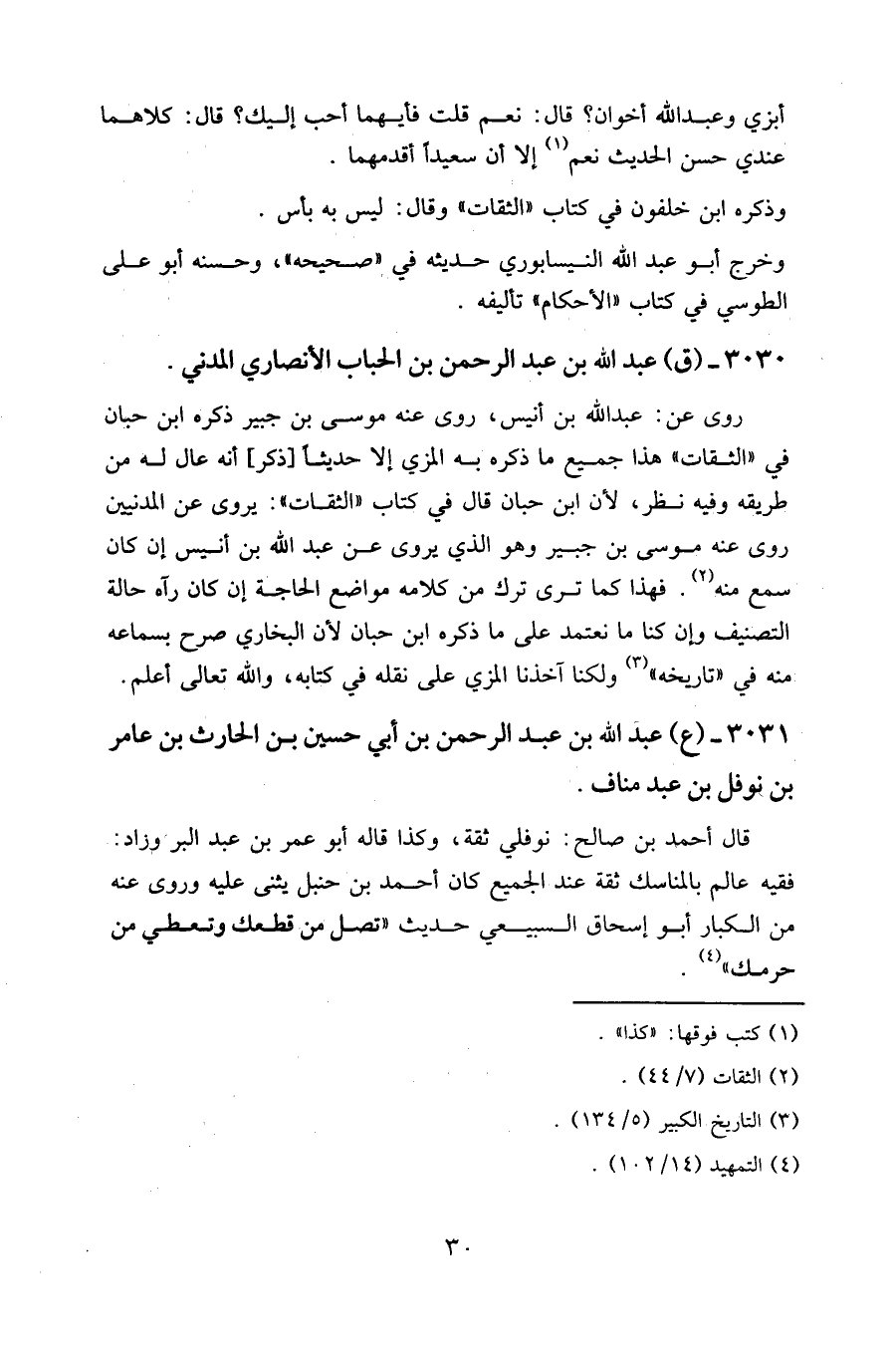 ٣٠٣١ - (ع) عبد الله بن عبد الرحمن بن أبي حسين بن الحارث بن عامر بن نوفل بن عبد مناف.