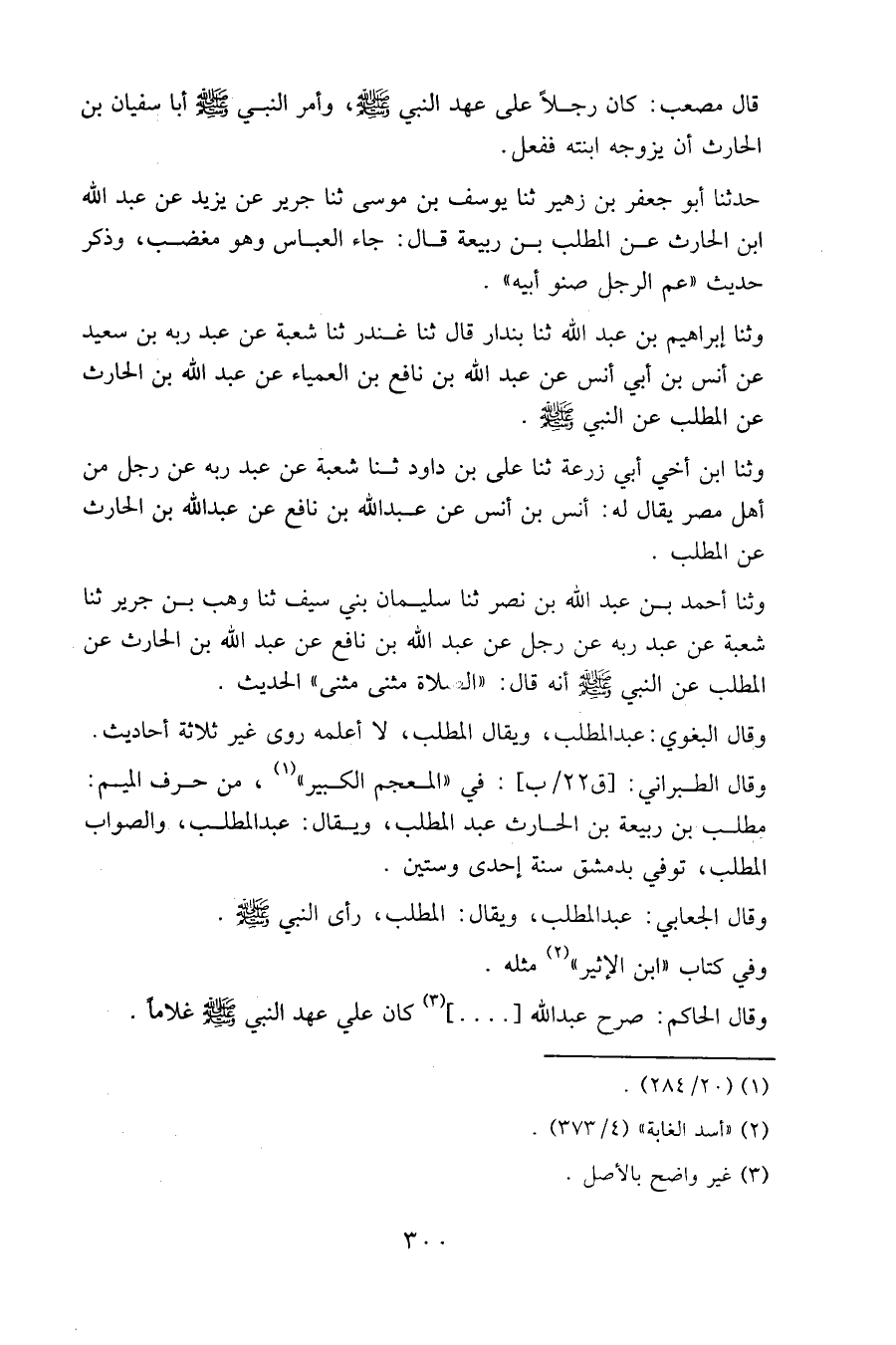 وقال الطبراني: [ق٢٢/ب]: في " المعجم الكبير "، من حرف الميم: مطلب بن ربيعة بن الحارث عبد المطلب، ويقال: عبد المطلب، والصواب المطلب، توفي بدمشق سنة إحدى وستين.