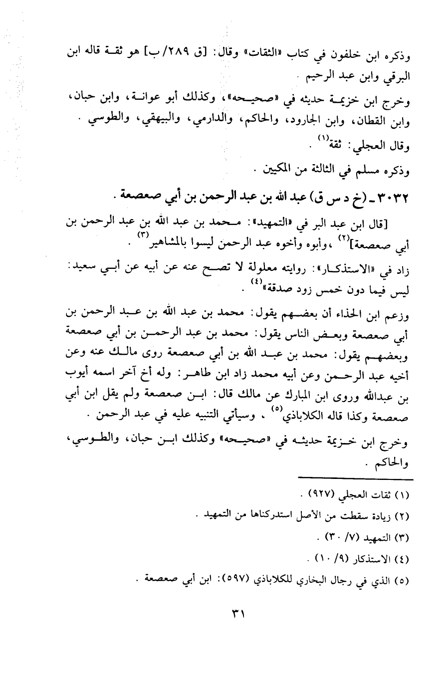 ٣٠٣٢ - (خ د س ق) عبد الله بن عبد الرحمن بن أبي صعصعة.