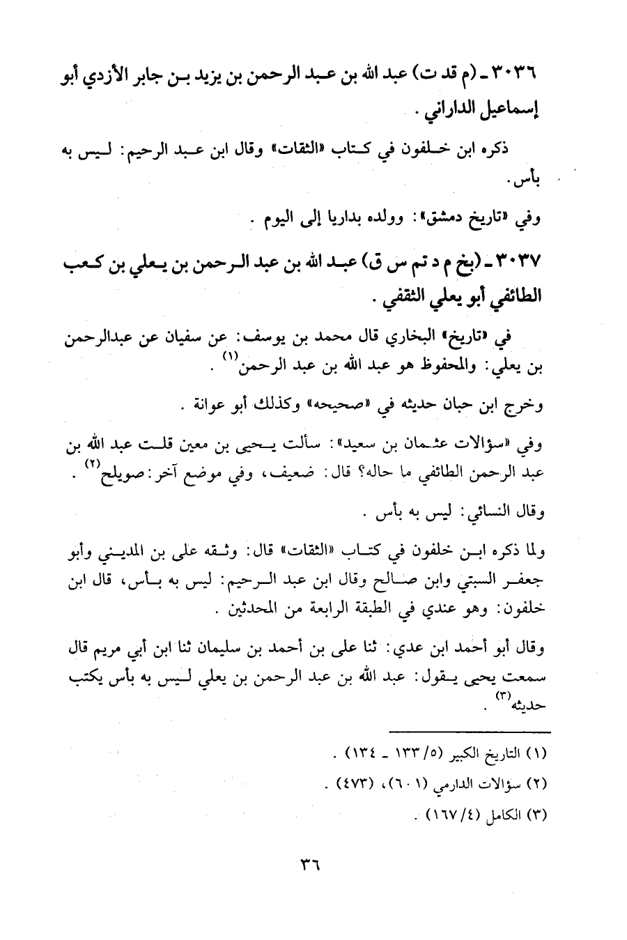 ٣٠٣٦ - (م قد ت) عبد الله بن عبد الرحمن بن يزيد بن جابر الأزدي أبو إسماعيل الداراني.