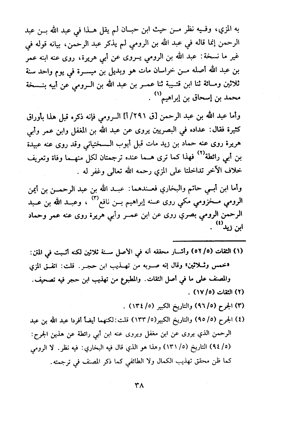 وأما ابن أبي حاتم والبخاري فعندهما: عبد الله بن عبد الرحمن بن أيمن الرومي مخزومي مكي روى عنه إبراهيم بن نافع، وعبد الله بن عبد الرحمن الرومي بصري روى عن ابن عمر وأبي هريرة روى عنه عمر وحماد بن زيد.