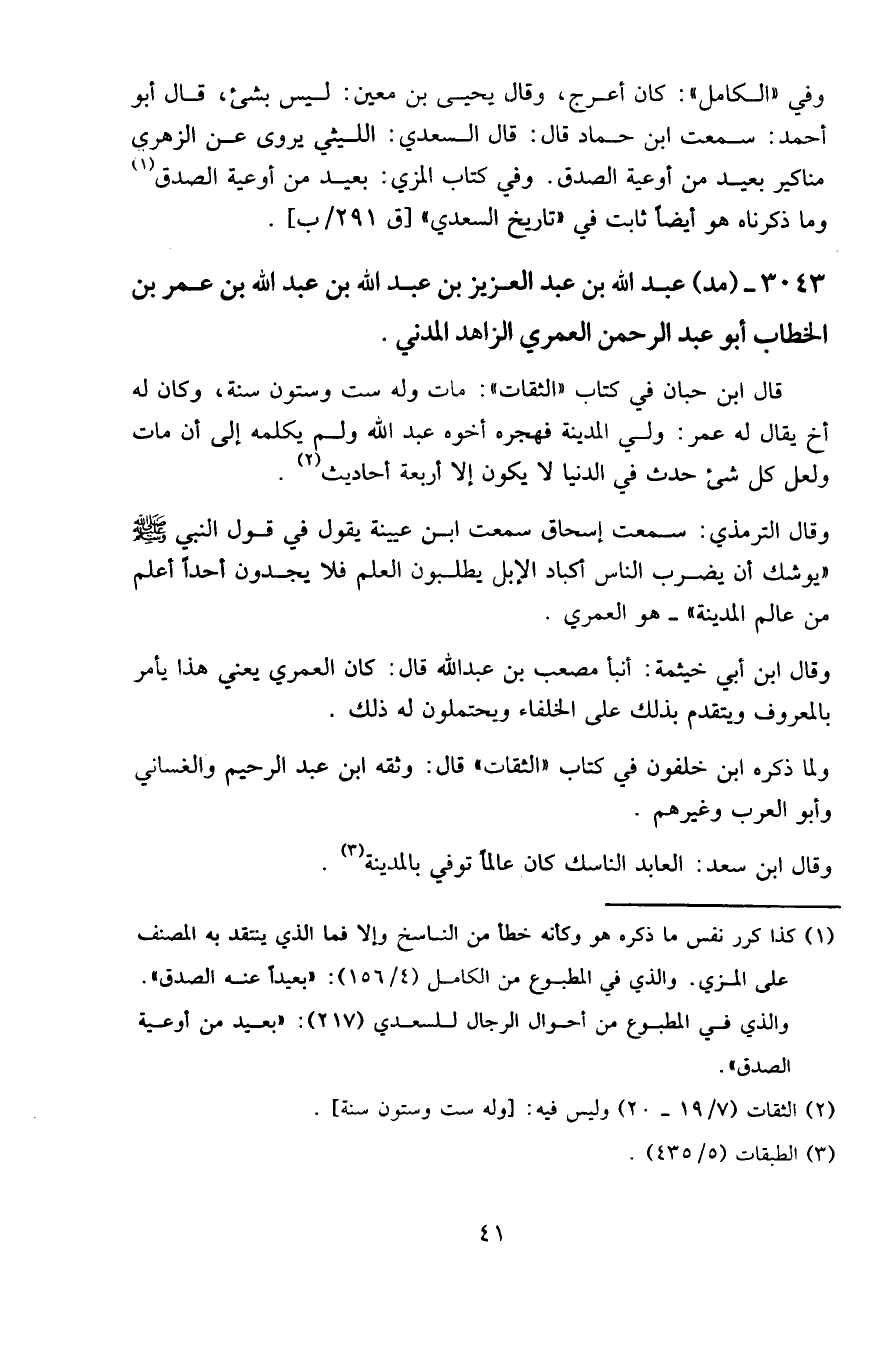 ٣٠٤٣ - (مد) عبد الله بن عبد العزيز بن عبد الله بن عبد الله بن عمر بن الخطاب أبو عبد الرحمن العمري الزاهد المدني.